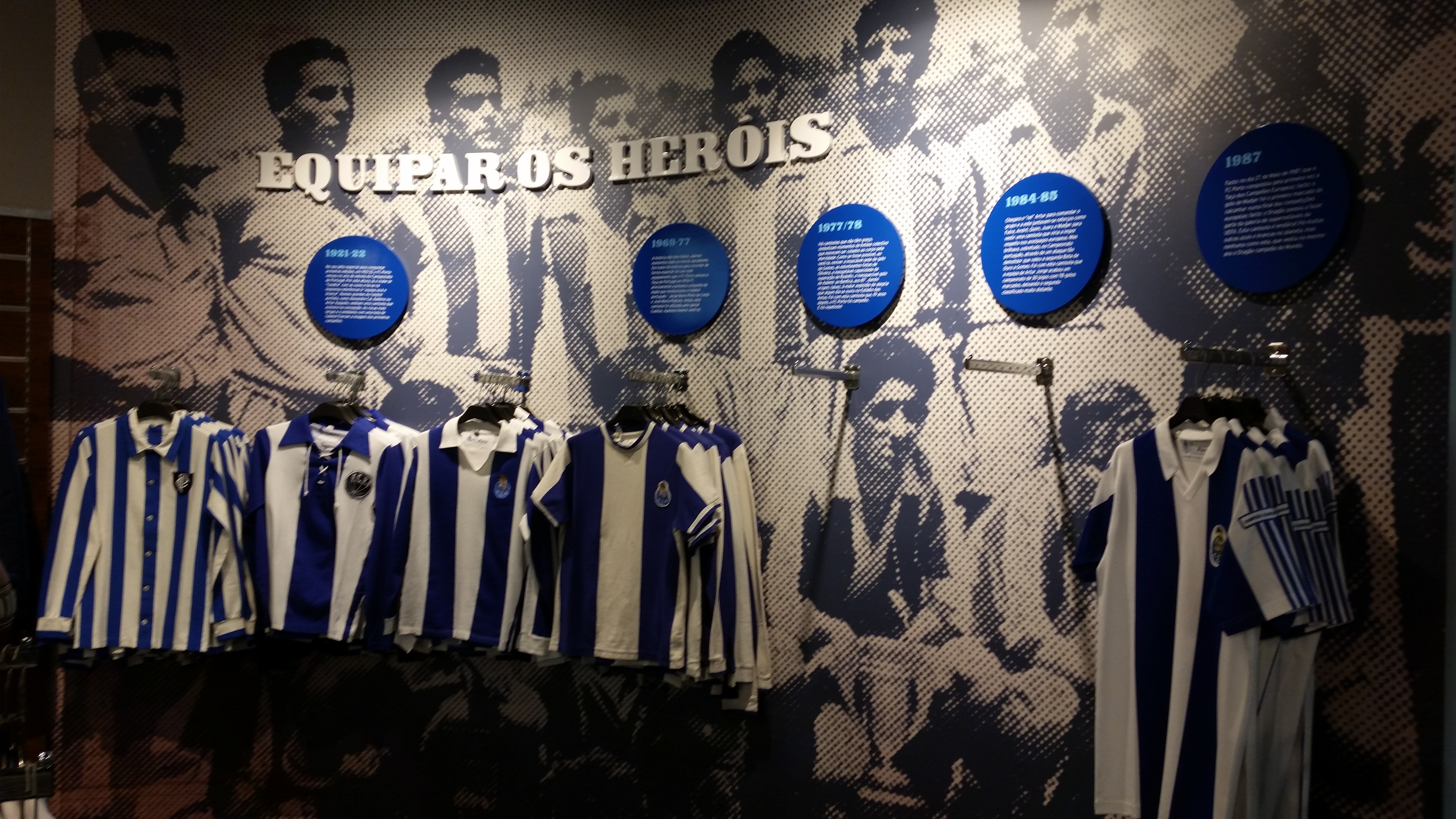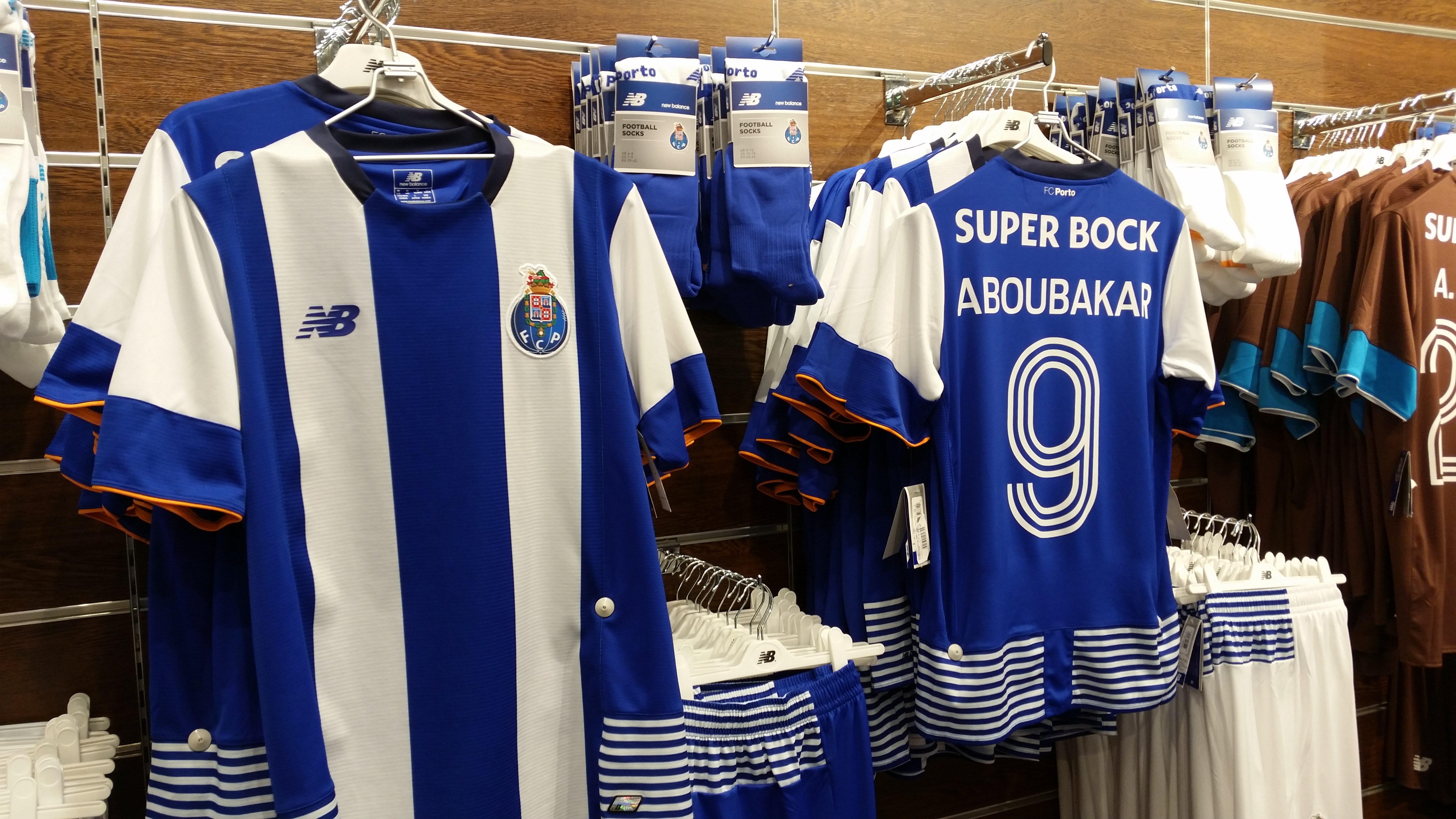 På strategisk vis afsluttes både museumsbesøg og stadionrundvisning på Estádio de Dragão naturligvis med et besøg i fanshoppen. Her kan man så købe alt lige fra sutteflasker til sportstasker til spillerdragter til sandaler til askebægre – alt med FC Porto-logo, naturligvis. Ifølge den søde ekspedient i butikken er angriberne Aboubakar (fra Cameroon) og Brahimi (fra Algeriet/Frankrig) de to mest populære spillere i forhold til salg af spillertrøjer. Men de er jo slet ikke portugisiske statsborgere, så hvad har det så at gøre med portugisisk historie?